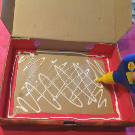 2. cortar un trozo de tela para la base y fijar con pegamento.