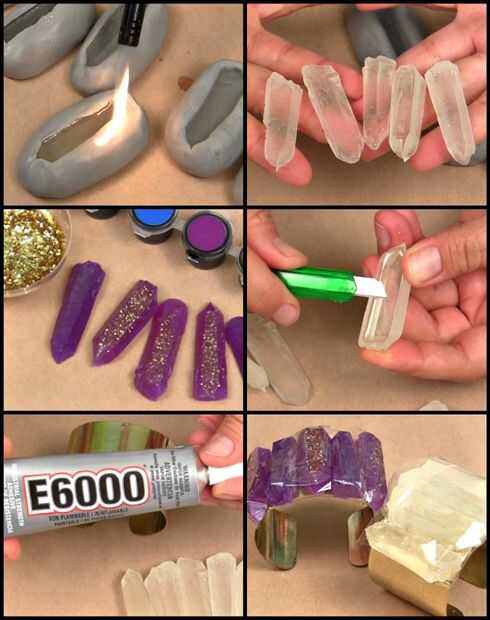 Los "cristales de cuarzo" el pegamento a un brazalete de metal plana con E-6000