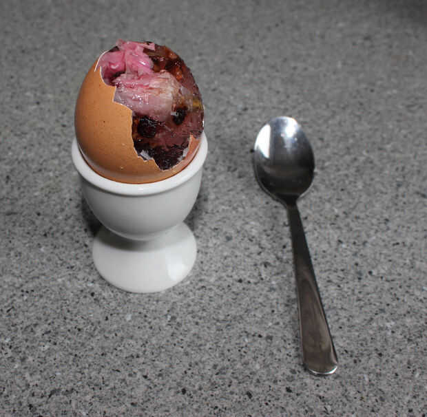 me gusta un reto tan decidido vendría con un falso huevo y entrar en este concurso! Hace una gran alternativa para hacer las tareas del hogar!Tomé un huevo blanco llano e hizo dos pequeños agujeros superior e inferior y sopló hacia fuera de las tripa