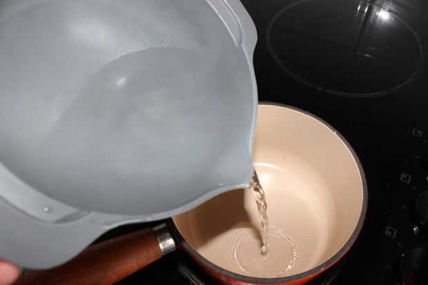 A continuación, calentar 300 ml de agua a fuego lento. Añadir 1-2 cucharaditas de azúcar al agua (dependiendo de cuán dulce prefiere cosas)