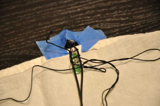 Por lo que tiene tu cuero grabado hacia abajo y el hilo de seda atado a la cadena de cuero izquierdo.