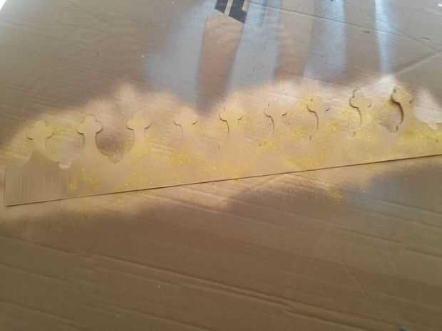 Haceos el corona plana lado exterior y pintura de aerosol lo. Espolvorear ligeramente con brillo fino que seca.