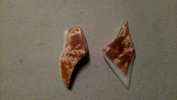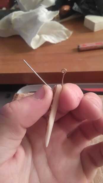 Una vez que el aceite se haya secado y esté satisfecho con el resultado, es tiempo para hacer estos pendientes de colgar. Hay muchas maneras de hacer que esto y hemos elegido hacer esto tan simple como sea posible, sobre todo porque no tengo las herramientas adecuadas para soldadura, ni las habilidades. La cosa a tener en cuenta, es cómo la pieza se va a colgar. Usted querrá considerar tanto cual es el más pesado, como también la apariencia de la pieza. Colgará y moverse mejor si la parte fuerte es el más bajo, pero para el pendiente a la izquierda, elegí tener la mayor parte en la parte superior ya que se vería mejor si se combina con la otra.