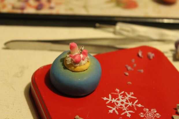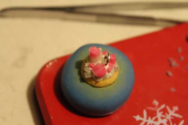 1. Use la aguja para suavemente arreglar sus cristales más grandes. La mezcla TLS ayuda a pegar sobre el cupcake.