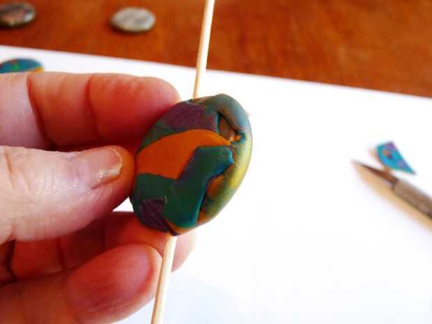 Cuando tienes la mayor parte de su grano cubierto (sin cualquier superposición) es hora de rellenar pequeños huecos con pequeños trozos de arcilla. También rellenar alrededor de los palillos si ya no has hecho.