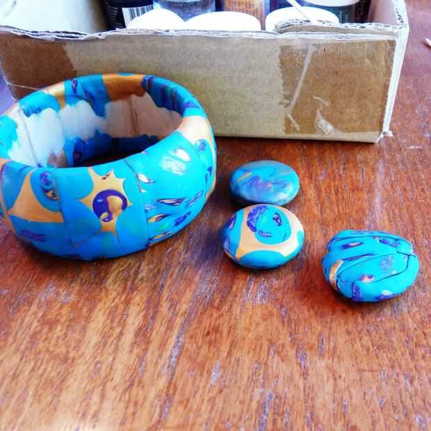 Usé las mismas técnicas para cubrir una forma de brazalete madera. Sin embargo, la base de madera requiere a un agente de la vinculación de polímero por lo que la arcilla no se propagan.