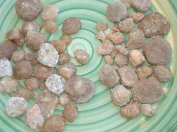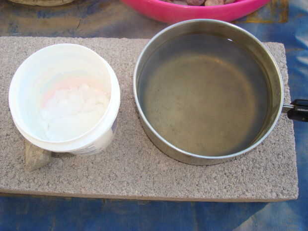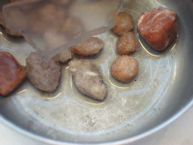 Rompió y lavar los diamantes con el blanqueo de madera. Ayudó pero todavía tienen algún tipo de depósito mineral y el hierro un poco así que no estoy seguro de lo que en ellos a la izquierda. Yo estaba buscando una mirada más clara del diamante. Después de uso del baño de blanqueo y enjuagar los diamantes bien me calienta una cacerola con agua y agrega los diamantes. Los calienta a fuego lento durante un par de horas. Esto quita más minerales no deseados y se pueden ver en la izquierda están los diamantes limpios y a la derecha están los diamantes antes de limpiarlos bien.