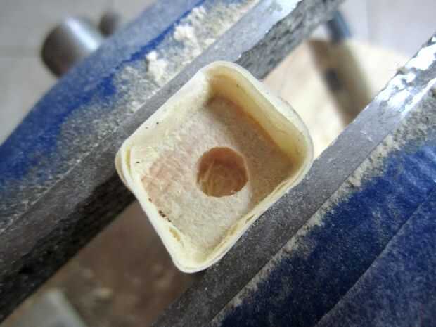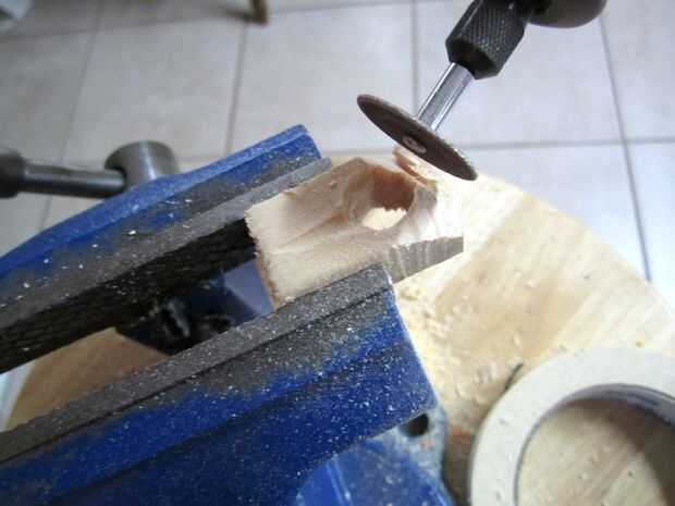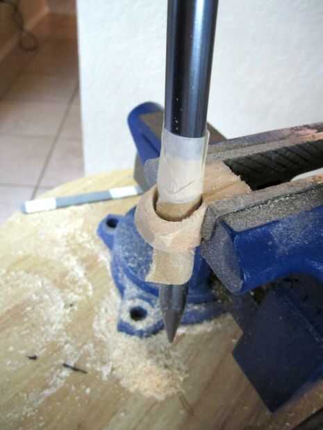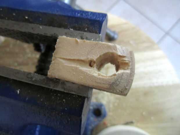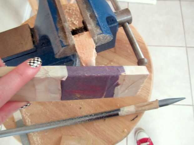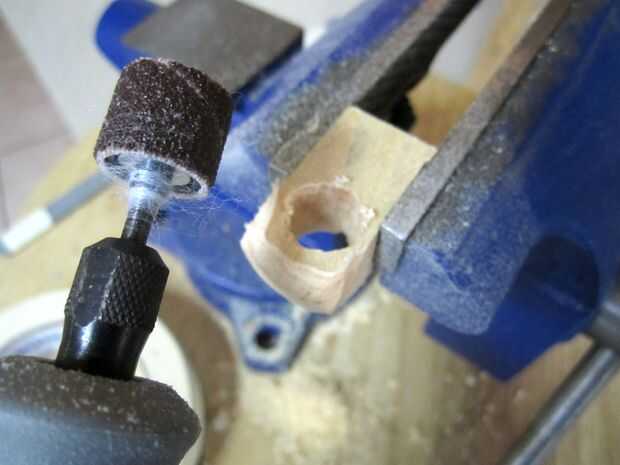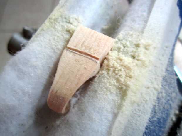 * Comenzar a lijar el agujero para que el dedo. Usé una aguja de tejer con papel de lija pegado alrededor de él.