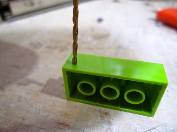 Ser cuidadoso y constante con el taladro - Legos son extraordinariamente suaves y pasará a través de ellos muy rápido, así que presta mucha atención. : D