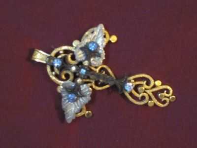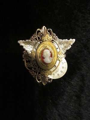 Uno de mis próximos proyectos era crear steampunk accesorios para disfraces. Me había tirado a mi o joyas rotas en el suelo y trató de diferentes piezas de capa juntos hasta que tuviera algo que se vería como un broche.