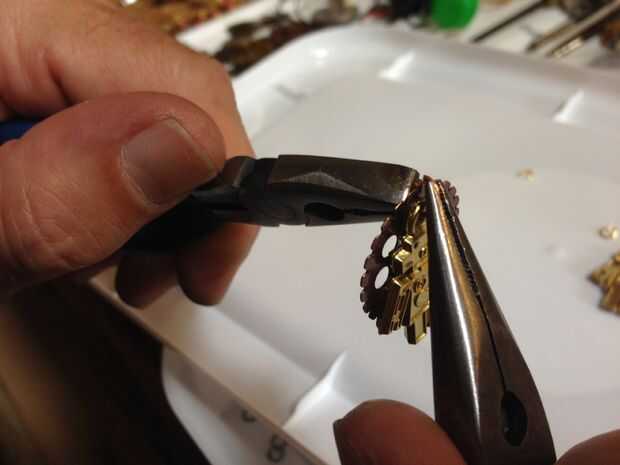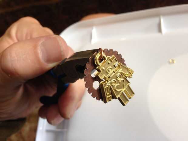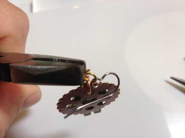 3. Coloque un jumpring grande (9 mm?) alrededor de los resultados y los engranajes con sus pinzas. Cerrar el anillo alrededor de los engranajes.