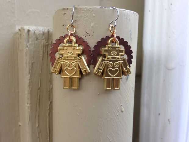 2. mejorar su hallazgo - a veces usar pintura en aerosol para mejorar mis resultados. En este caso rociaron dos robots acrílico morados con 18 k oro pintura.