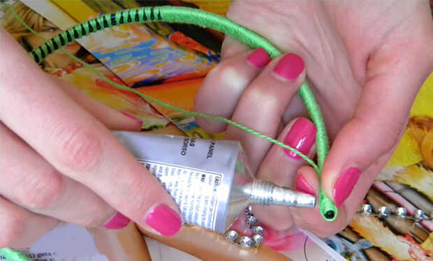 Paso 4: Después de cubrir la banda entera, pegar el extremo de la cuerda como hiciste al principio. Las gotas de pegamento seguro.