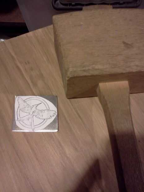 Ponga un pedazo de cartón delgado o papel a cada lado del metal y luego golpeó con un mazo de madera contra un bloque de madera dura.