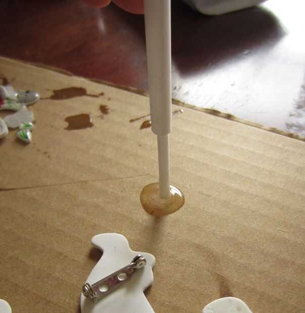 Esta es la parte fácil estupendo! Coloque sus resultados (piezas de joyería) utilizando Araldite. Araldite es un pegamento de resina de 2 parte, simplemente mezcle según las instrucciones del paquete y pegamento en tus conclusiones. Mezclo mi Araldite en la cartulina que las piezas están apoyándose. Con araldite puedo pegar generalmente 4-6 piezas de 1 mezcla. Lo mezclo en lotes pequeños. Araldite se seca bastante rápido. Le doy 24 horas para estar totalmente seco, sin embargo.
