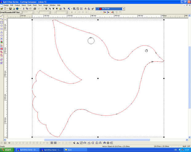 Una vez el. Fichero DXF se ha abierto en APS-Ethos, es simplemente una cuestión de garantizar el diseño es del tamaño adecuado, asignar vectores para corte/grabar, cargar el acrílico en el cortador del laser (origen/medios de ajuste), y cortar tantas como se necesita.
