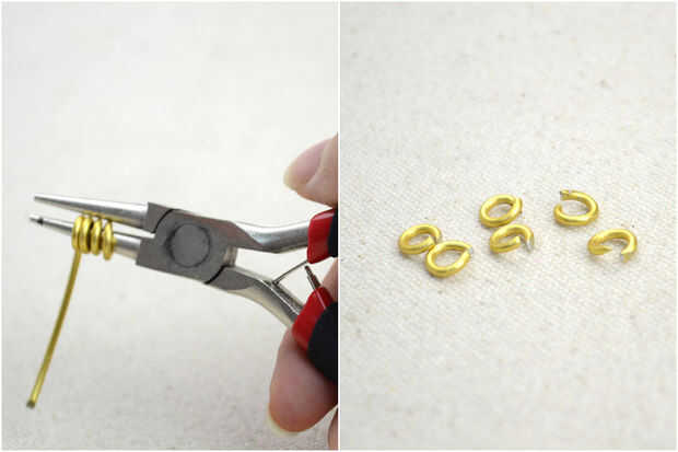 2 º, cortar las bobinas para conseguir 6 anillas doradas.