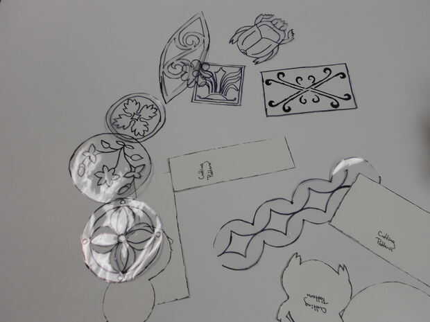 Caramba, si eres muy bueno en el trazo o dibujo a mano alzada, puede crear su propio. Diseños de nudos celtas funcionan bien para la mayoría de joyería o medallones. Dara le gusta hacer 2 patrones, un patrón de corte en blanco para las piezas más grandes y una marca clara o dibujo para la joyería que tiene que hacer varias veces. Esto funciona especialmente bien para múltiplos.