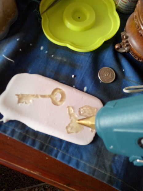 Ahora calentar la pistola encoladora. El truco es usar palitos de pegamento de alta temperatura y meter la boquilla hasta en el molde y trabajar desde allí. tardará unos intenta averiguar cómo impedir que las burbujas de aire formando pero la mejor parte es que el pegamento fresco y listo para su uso en unos minutos.