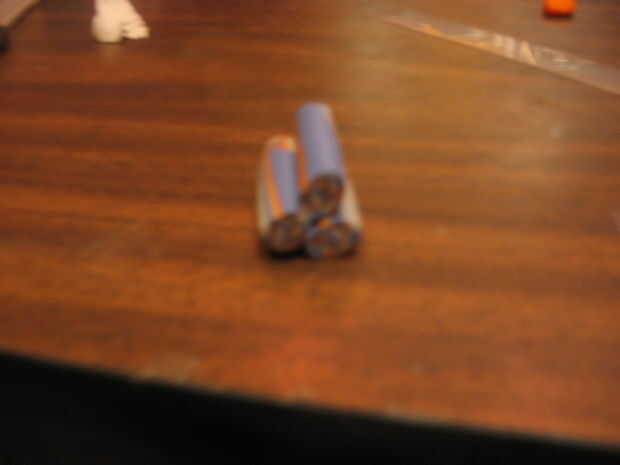 tomar algo de lo que queda del rollo de canela y rodar hacia fuera así que se convierte más fino. Obtener un registro del color complementario, rodar hacia fuera para el mismo espesor y recortar hasta la misma longitud. Luego hacer lo mismo, pero en plata. pila de los tres troncos forman una pirámide y hacerlas rodar juntos. cortar este registro en varias partes (prueba para bajo cuatro), y hacer lo mismo.