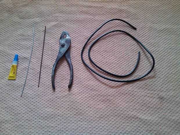 2. De dos piezas de alambre de metal grueso cada 10 Cm de largo