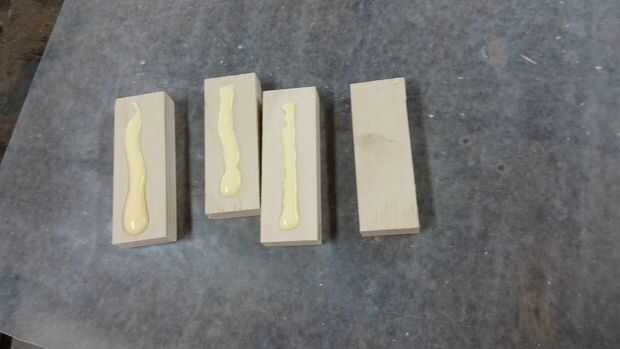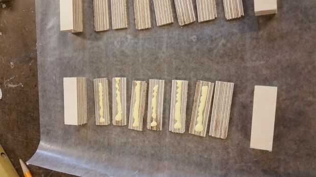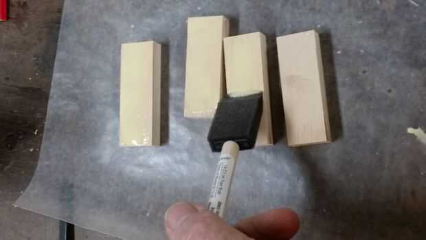 4) montar las piezas en el orden que queremos, luego pegarlos juntos 1 en un momento. Preste especial atención a tener 100% de cobertura de pegamento unas todas las superficies. Utilicé un pincel de espuma para distribuir uniformemente el pegamento. Tómese su tiempo construyendo los bloques