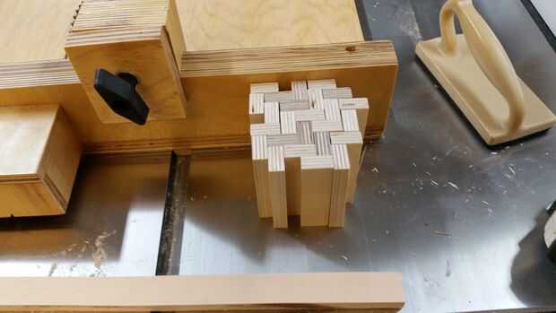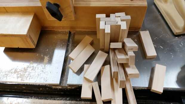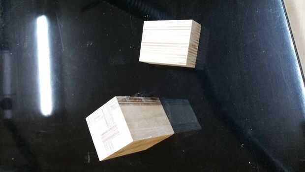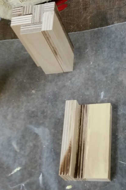 6) Observe el patrón de luz y algunas piezas oscuras. No noté hasta después de las abrazaderas fueron quitadas. Todos los bloques fueron cortados desde el borde mismo de la misma hoja de madera contrachapada.