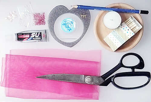 gasa poliester, decoración materiales (lentejuelas, cinta, rhinestone, pequeños metales...), linea (hilo de fibra sintética), broche de pesca y anillos del salto