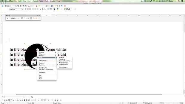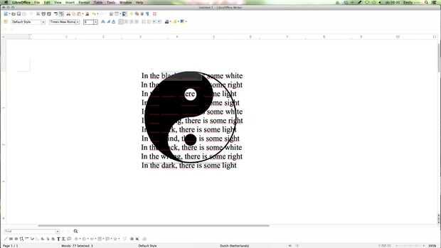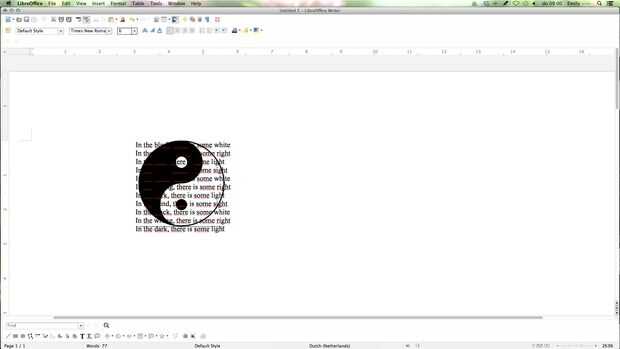 Para poder poner el texto sobre la imagen, puede que necesite poner abrigo -> en el fondo, de lo contrario el texto irá sólo alrededor de él. Para llenar el espacio vacío, usted puede copiar/pegar el texto. A continuación, cambiar el tamaño del texto a 6. Ya que habrá espacio vacío otra vez, agregue el texto otra vez.