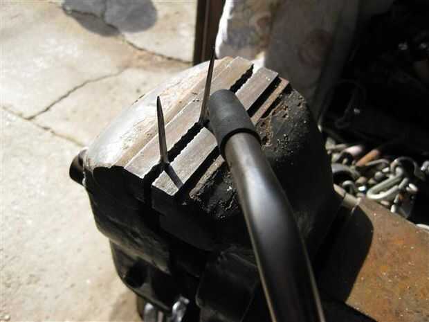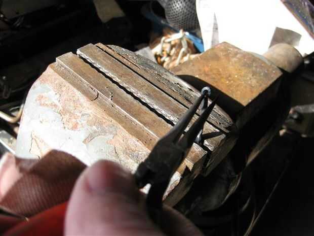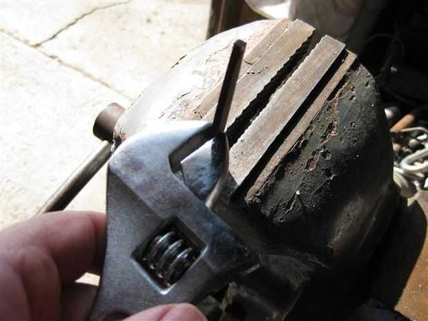 Con el soplete, calentar el clavo. Mientras está todavía caliente el clavo gire el clavo con la llave ajustable.
