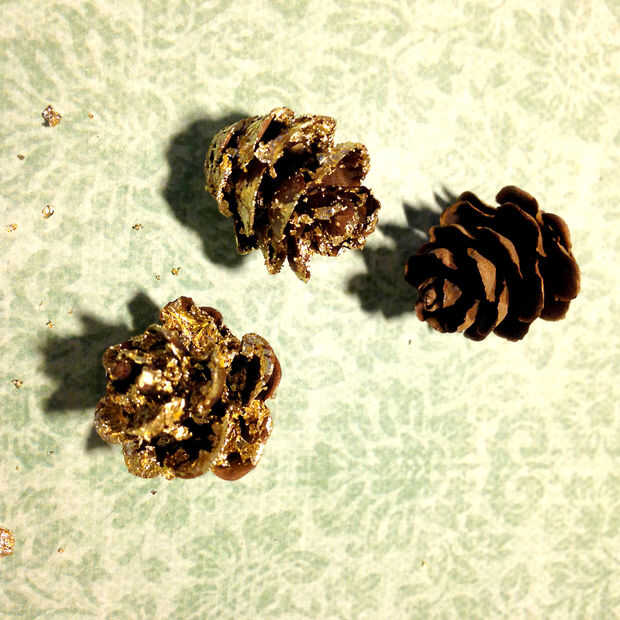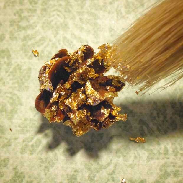 Dejar que seque y cepille ligeramente el pan de oro sobrante