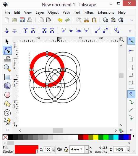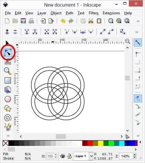 3. Seleccione el círculo exterior de uno de los pares de círculos. En la imagen he subrayado el círculo en rojo.