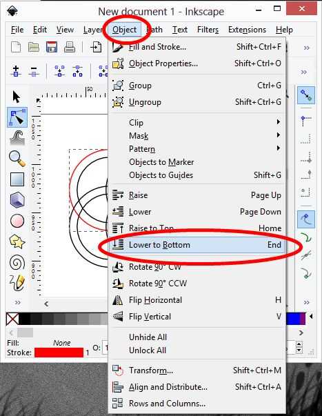 4. En el menú, haga clic en "Objeto" y seleccione "Baja a fondo". Esto empujará este círculo a la capa inferior. La imagen no va a cambiar visualmente.