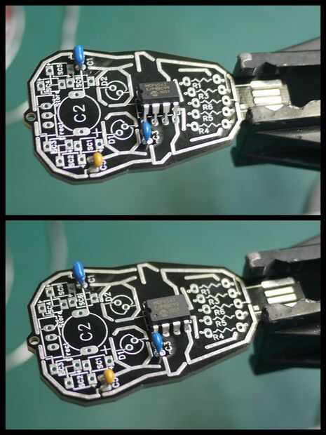 Línea de la viruta en el tablero, U1. El recorte en la viruta debe coincidir con la Plaza sobre la huella de chip board. Se puede ver en la imagen. Que tenga que apretar las puntas a cada lado para conseguirlo a presión en.