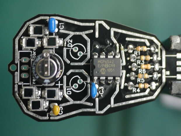 Y a continuación, la tapa del SUPER! Este cachorro mantendrá su cráneo va durante varias horas después del anochecer. El plomo negativo está marcado en el cuerpo de la tapa por un '-' firme en la banda de metal. Es con el positivo en la tarjeta. Orientación correcta se muestra en la imagen. La soldadura en la parte posterior.