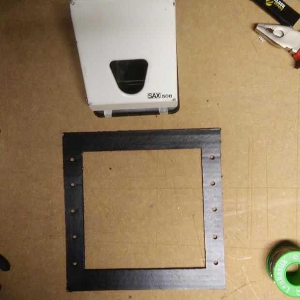 También hacer un soporte de cartón donde el espejo y los leds vienen a través. Los agujeros donde los leds vienen a través de debe hacer con una perforadora.