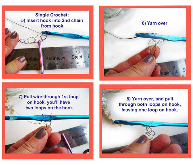 6) yarn over - otra vez, esto es cuando Envuelva el extremo moldeado del alambre de la parte posterior del anzuelo, en la parte superior del anzuelo y en la "ranura"