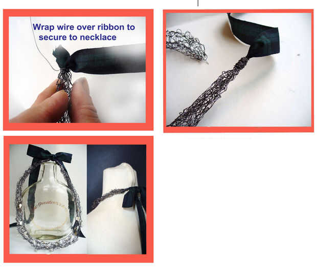 Si quieres un final envuelto en alambre más grueso, puede fácilmente cortar un adicional 12" longitud del alambre, enhebrar los lazos donde se encuentran el cable de cinta y crochet y envuélvalo alrededor para hacer un final agradable, aseado.
