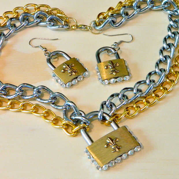 Obtener la tendencia de la joyería de candado para caída con este fácil dólar tienda latón cerradura jewelry diy. Añadir pedrería y dijes de metal y rock la pista!