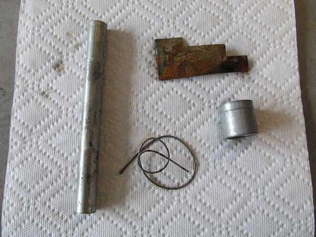 Por último, se me cayó algunas otras piezas de acero en un pedazo de alambre galvanizado, una sección de tubería galvanizada de 1" y un trozo de chapa de calibre 22. Después otros 3 días me vaciaron el bolso y descubrió lo siguiente.