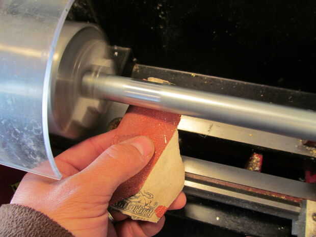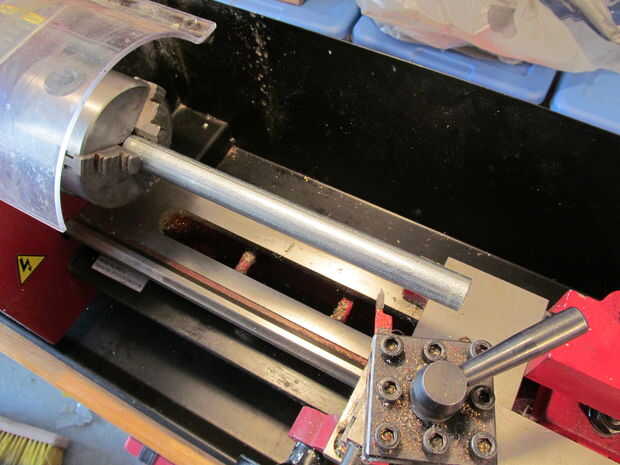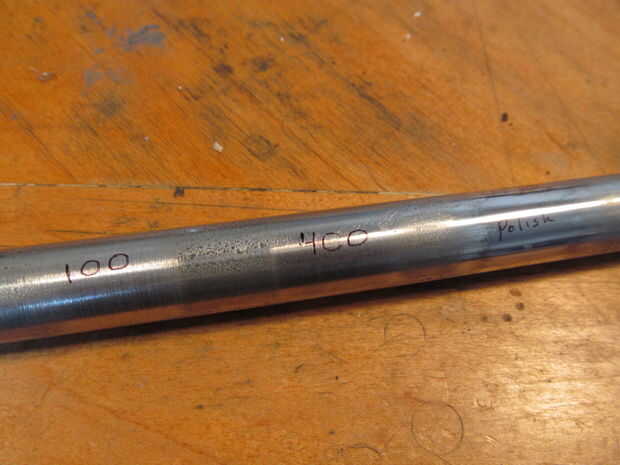 Tomé una sección de tubería galvanizada de ½" y tiraron en mi torno. Estuve probando 4 texturas de la superficie de la tubería.