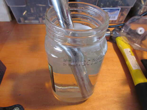 Pensé que junto a la licencia que sumergido. Tengo bolsa zip lock, vierte algo de agua en y cayó en la tubería. Tres días más tarde, nada. Me ha sorprendido. Pensé que seguro que esta cosa se oxida.