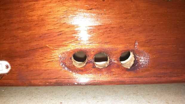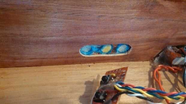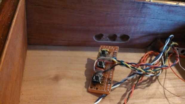No quiero poner estos dentro de la caja, que quería mantener el interior simple. Yo los agujeros perforados y utilizar mi herramienta rotatoria a la arena un surco entre los agujeros, por lo que los botones se pueden empotrar.