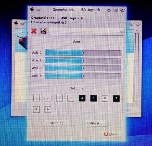 Estoy usando un joystick probar aplicación en Linux en esta captura de pantalla, pero estoy seguro que encontrarás algo similar en ese otro sistema operativo.