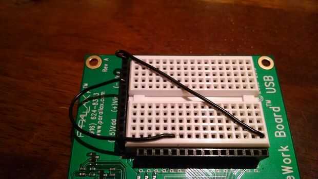 Poner dos cables en el VSS - en la parte superior de la Junta. continuación, ejecute un cable al pin 11 en la protoboard. El segundo cable irá al pin 0 en el protoboard.