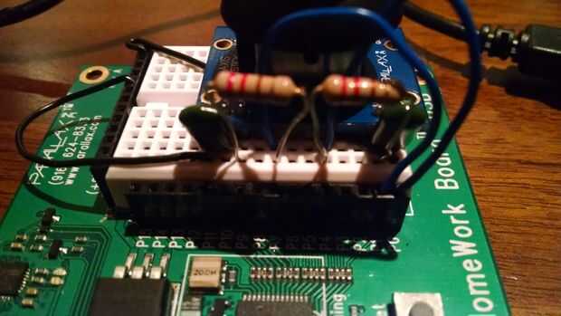 Ahora 2 resistencias de 220 ohmios y en el protoboard en el pin 1, 4 luego el otro en 7,9.