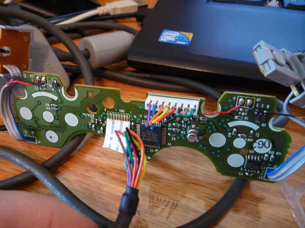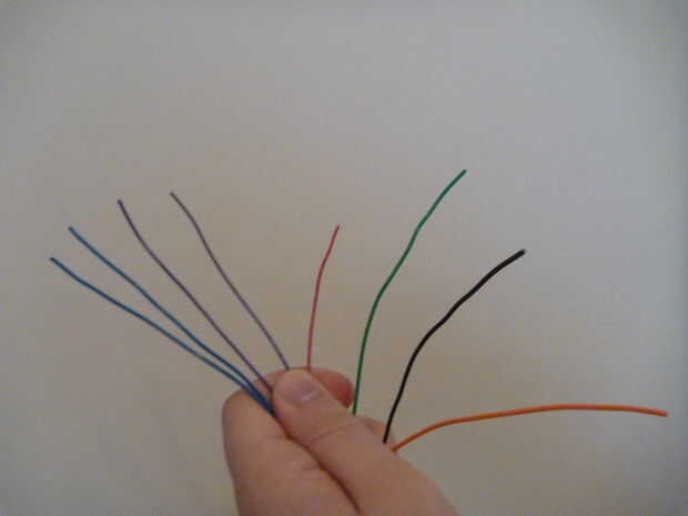 Usé alambre de núcleo sólido de calibre 22 para que puedo enganchar los joysticks hasta un protoboard una vez terminé, pero si quieres que puedes ir directamente a cable original del controlador ya que también cuenta con 8 cables y buena longitud. Estoy pensando en ir inalámbrico cada vez que me decido a poner las palancas de mando a utilizar así que voy a ahorrar el cable controlador para otro momento.