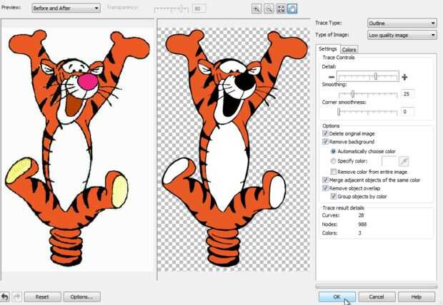 "Combinar objetos adyacentes del mismo color", "Eliminar superposiciones de objeto", "Agrupar objetos por color" lo hace todo más fácil trabajar con y asegura que nuestro resultado final sea plano.