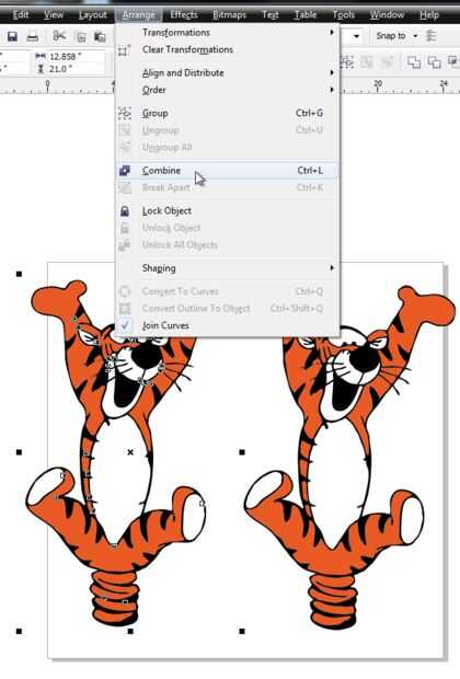 y por último, último paso en el menú "Organizar", seleccione "Combinar". Esto hace que todas la partes una sola pieza.