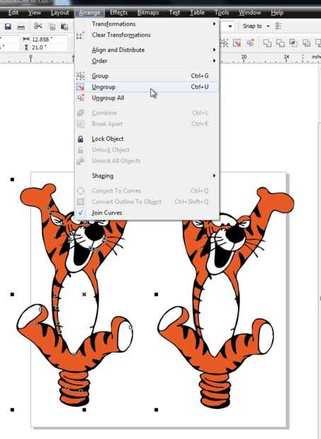 En segundo lugar, arrastre un cuadro alrededor de la primera copia completa para seleccionarlo y luego vaya al menú "Organizar" y "Desagrupar". Esto nos permite modificar la forma de cada una de las piezas.